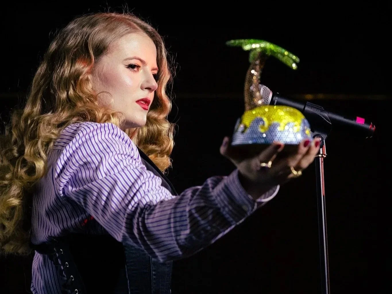 Her upcoming release, ‘1923’ is a big band jazz infused record that brings together her pinstripe aesthetic and bejewelled ceramic art which she includes in her live performances as stage props and a way to interact with her audience.